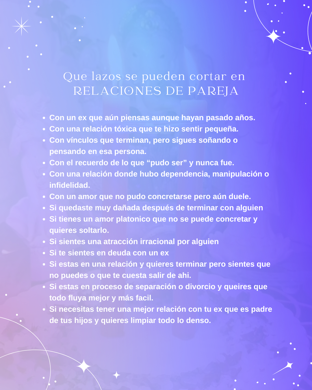 ✨ Importante: Cada corte se realiza por persona. Si deseas trabajar más de un vínculo, se realiza un ritual distinto para cada uno.